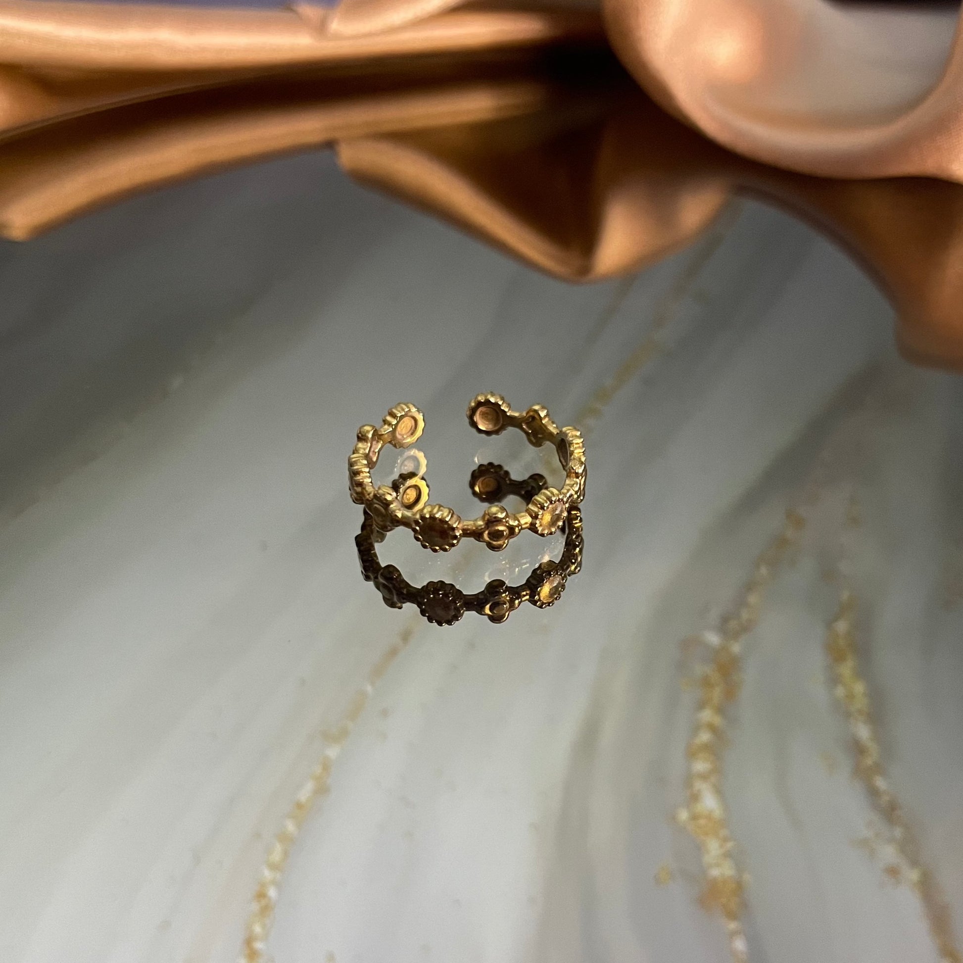 Prachtige ring uit edelstaal met een 14 karaat gouden laag.