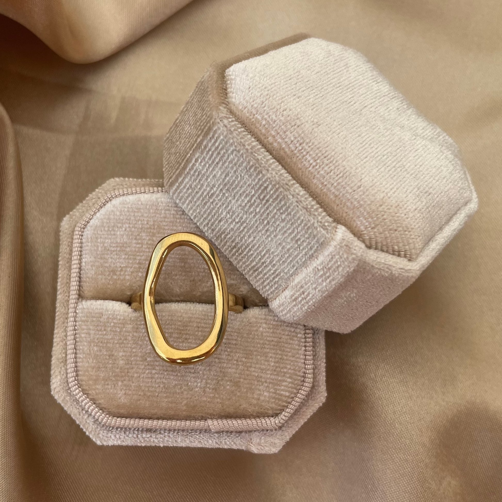 Prachtige ring uit edelstaal met een 14 karaat gouden laag.