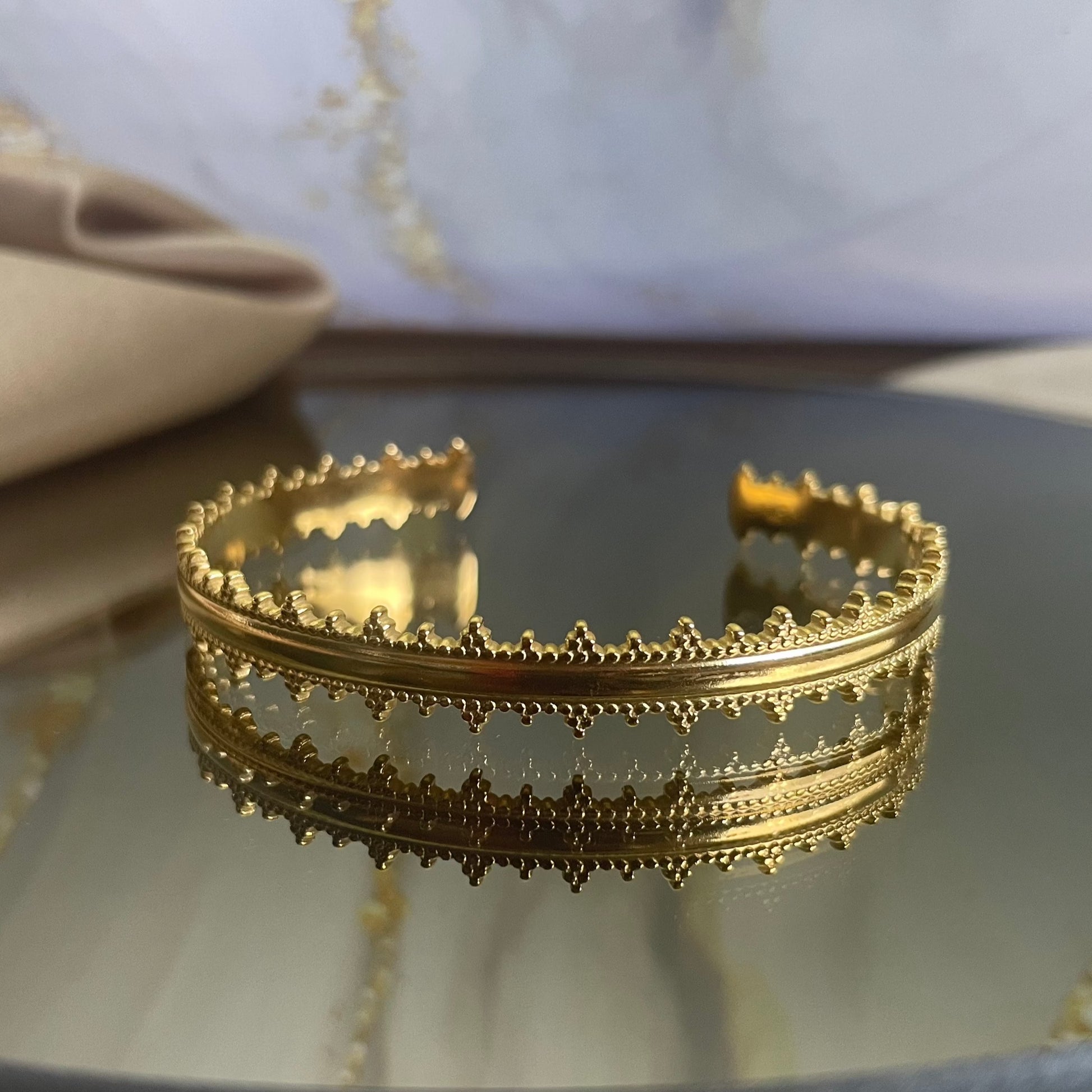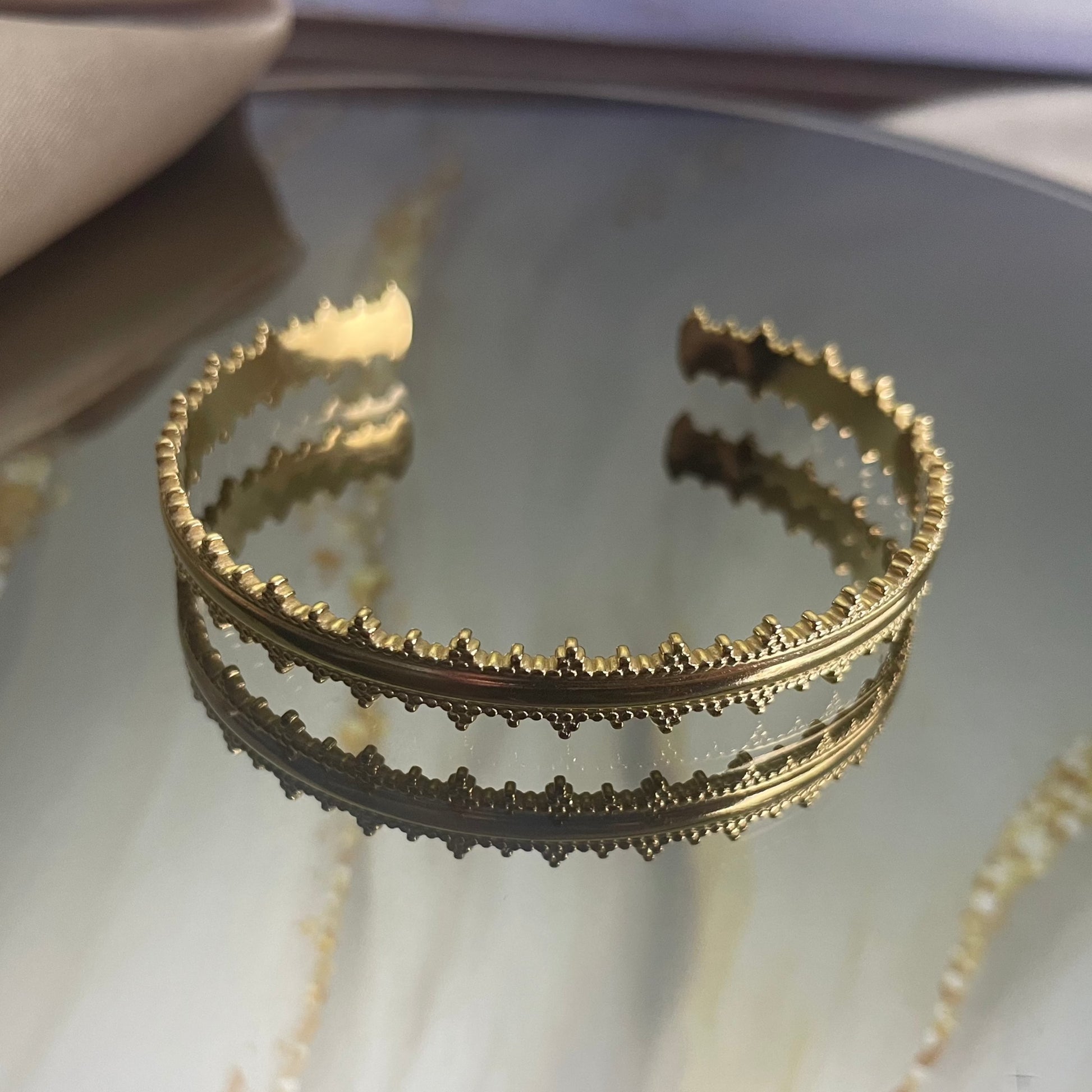Prachtige armband uit edelstaal met een 14 karaat gouden laag.