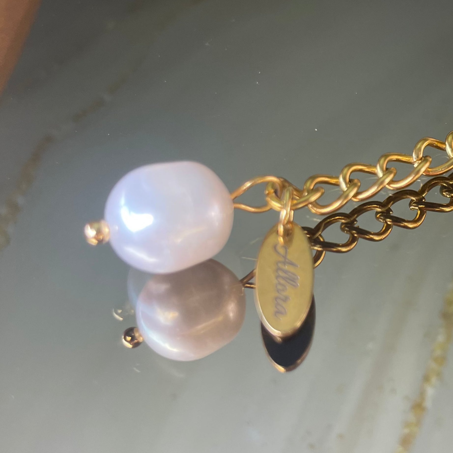 Prachtige armband uit edelstaal met een 18 karaat gouden laag en echt parels.